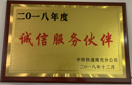 我公司獲得中移鐵通南充分公司頒發(fā)的誠信服務(wù)伙伴認證