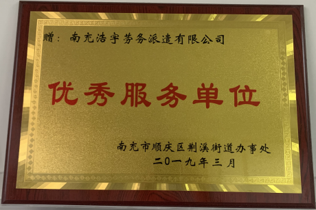 我公司獲得南充市順慶區(qū)荊溪街道辦事處優(yōu)秀服務單位認證